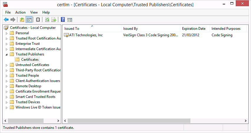 $cert = Import-Certificate -FilePath $certificate.FullName -CertStoreLocation Cert:\LocalMachine\TrustedPublisher
